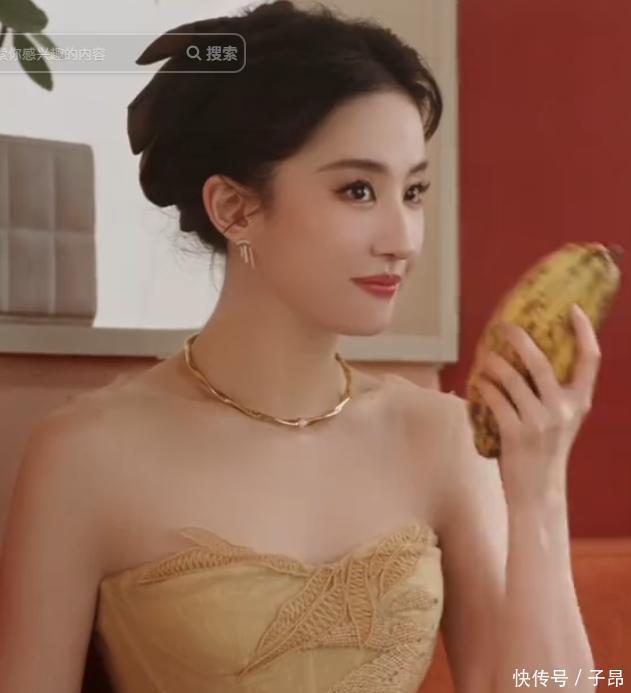 紧着又发出来一个广告的小视频,她穿着一件黄色抹胸的礼服坐在沙发上面,手里还拿着一个黄色的水果正在假装往口里放,脖子上面戴着一根金色的项链装饰,脸上化着精致的妆容,不得不说真是在她脸上丝毫没有看出来岁月的痕迹啊。